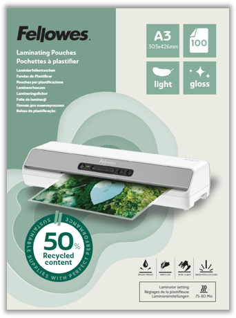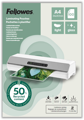 Ekološki osviještena i praktična, folija za plastifikaciju PK100 izrađena je od 50% recikliranih materijala, pružajući vrhunsku zaštitu dokumenata i elegantan sjaj laminiranih površina. Idealna je za ured, školu ili dom.